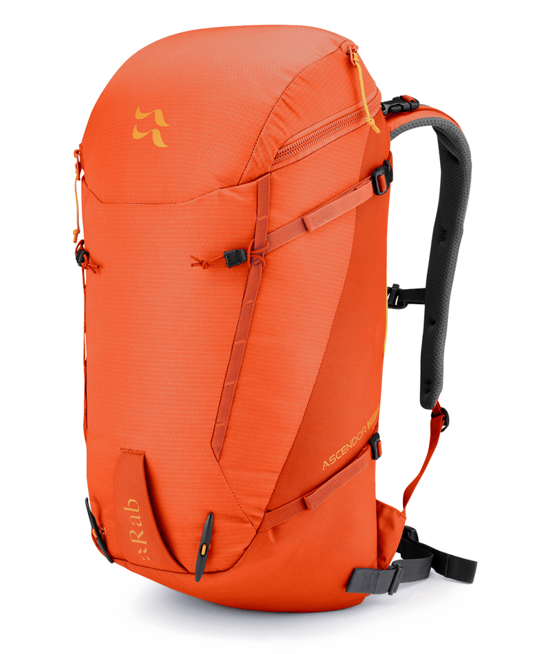 Mochila vertical de aventura equipada para misiones all-mountain; ascensiones invernales mixtas, rutas de roca en verano, asaltos a paredes de hielo y esquí de travesía. Fabricada con un sistema de espalda ajustada, parte reciclada, construcción resistente y múltiples enganches para el equipo. Características- Sistema de transporte fijo TRI-FLEX™ con panel dorsal moldeado que repele la nieve- Correa para el esternón con silbato para llamar la atención- Tensor superior que estabiliza la carga cerca del cuerpo- Cinturón desmontable para días de montaña ligeros- Correas de compresión laterales superior e inferior para asegurar la mochila- Cadena frontal y correa de cuerda trasera para fijar el equipo- 2 fijaciones HeadLocker para piolets con pestañas desmontables- Entrada de carga superior con cremallera- Compatible con bolsa de hidratación de 3LMaterialesTejido principal: 35% reciclado 210 ROBIC DIA R/S / Trishield Dura y 50% reciclado 420D Mesh Dobby / HydroshieldEspecificaciones- 0.9kg / 2lb Desnudo (excl cinturón/cadera/marco/tapa) 0.7kg / 1lb 9oz- 19" / 48cm- TRI-